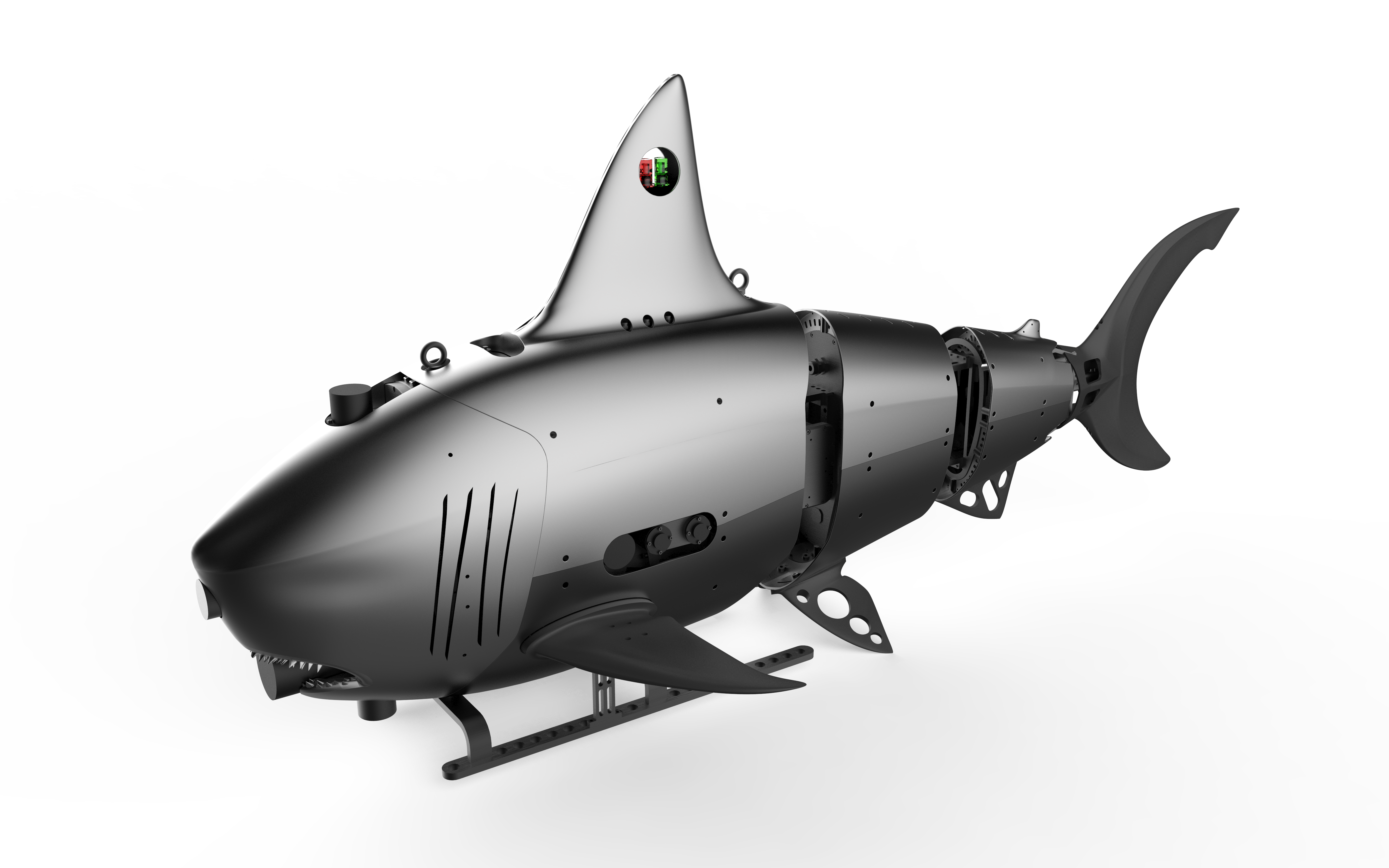 The Robo-Shark is a prototype of the Carangidae, and it is the first generation of industrial underwater bionic robots in China. The Robo-Shark has features such as low power consumption, high propulsion speed, and flexible steering, which can meet long-term navigation and large-scale underwater operation requirements, and has become a research hotspot in the underwater submarine field.